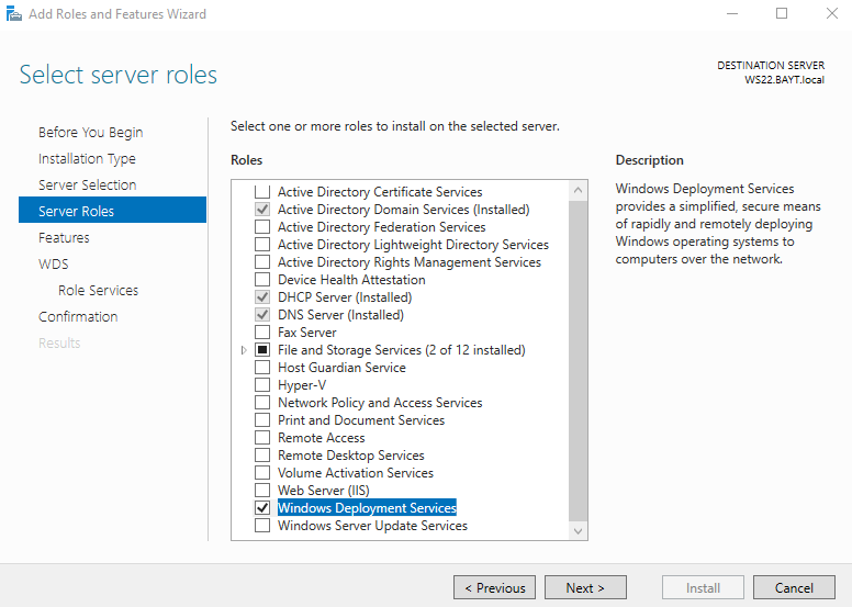 - Windows Server (c’est la version 2022 que j’utilise ici) avec le rôle WDS installé