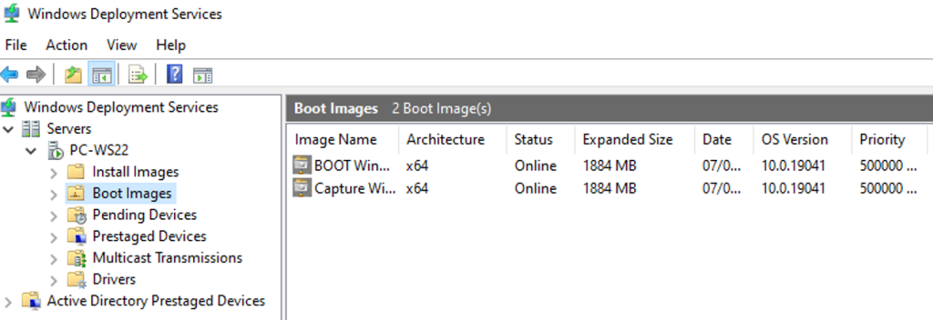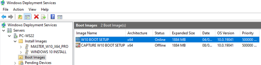 Je désactive l’image de capture et active l’image de démarrage boot.wim dans le répertoire d’images de démarrage.