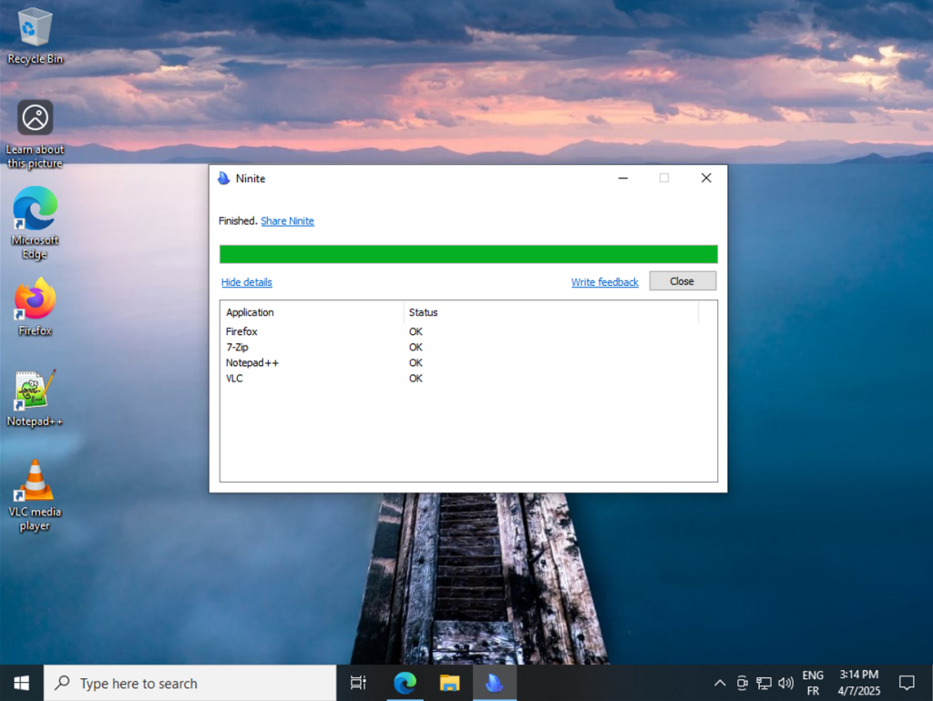J’installe ensuite quelques logiciels utiles tels que Firefox, 7zip et VLC (pratique : Ninite.com permet d’installer plusieurs applications en une fois).