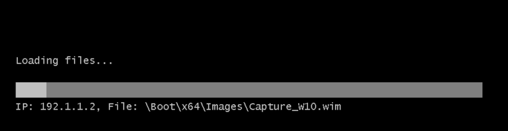 J’ai crée une machine virtuelle sans système d’exploitation, avec les exigences matérielles pour qu’elle puisse supporter Windows 10. Je lance la VM, elle démarre sur le réseau en recevant une adresse IP du serveur DHCP et en utilisant l’image boot.wim.