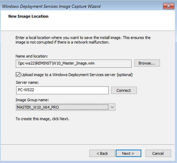 Je souhaite que l’image soit stockée dans le serveur WDS. Je me connecte donc au serveur en saisissant son nom et les identifiants de connexion.