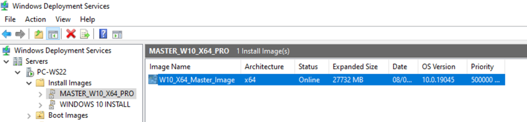 Sur le serveur WDS, je vérifie que l’image capturée est bien présente dans les images d’installation.