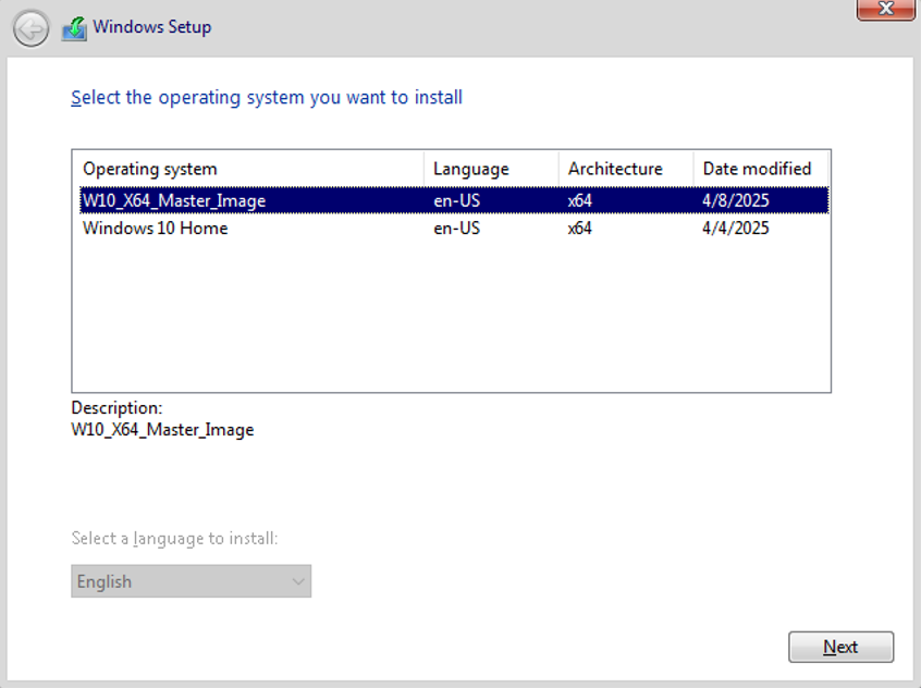 Je vais créer un master Windows 10 pour avoir une image personnalisée du système (système mis à jour, applications installées), puis déployer cette image sur une machine sans OS.