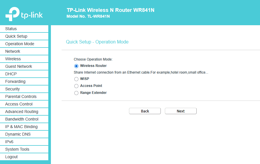 Je crée un nouveau mot de passe de connexion, ensuite je choisis le mode « Routeur sans-fil ».
