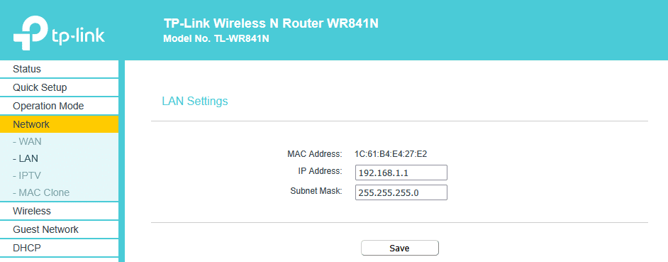 Enfin, je modifie l’adresse IP du réseau local pour la mettre à 192.168.1.1.